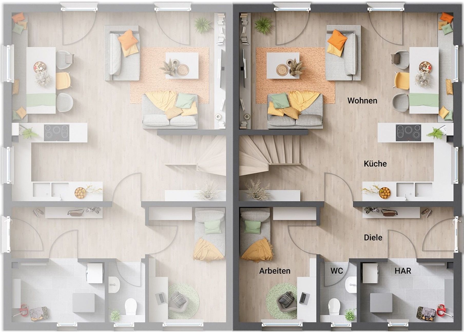 Das Doppelhaus Aura 115 ist die ideale Kombination aus urbanem Lebensgefühl und ländlichem Charme – und bietet viel Raum für eigene Ideen.