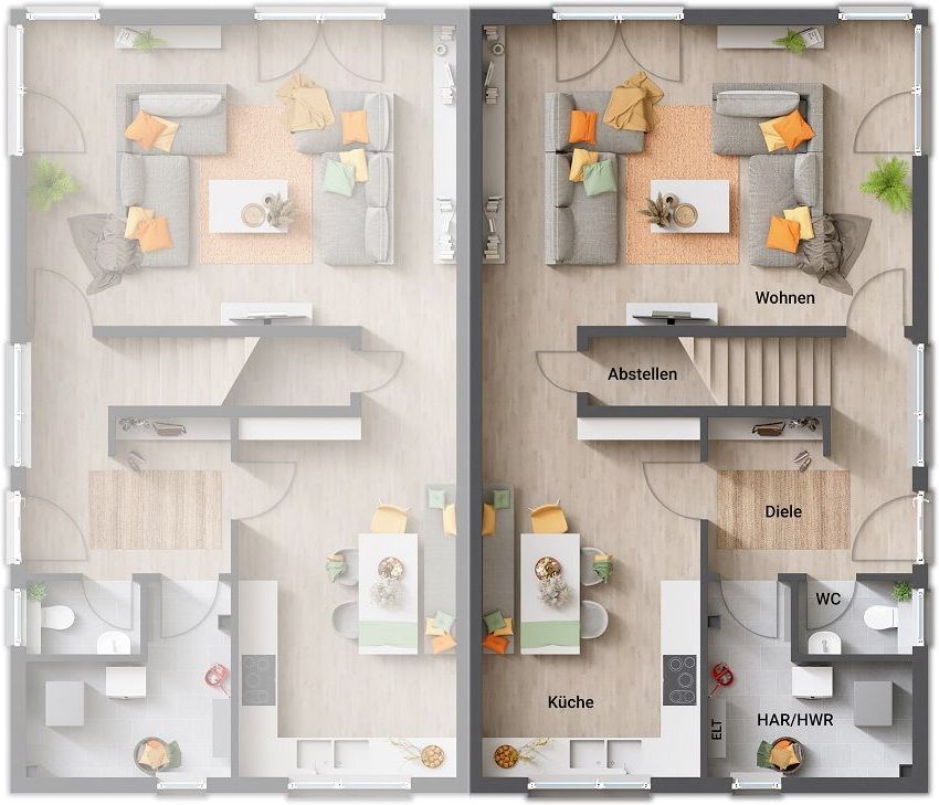 Das neue Doppelhaus Aura 136 überzeugt nicht nur mit seiner schicken Optik. Die gradlinige Architektur bietet besonders hohen Wohnkomfort mit einem Hauch von Luxus für die ganze Familie. Der im Kaufpreis enthaltene Hausbau-Schutzbrief macht dieses Massivhaus für Normalverdiener besonders interessant.