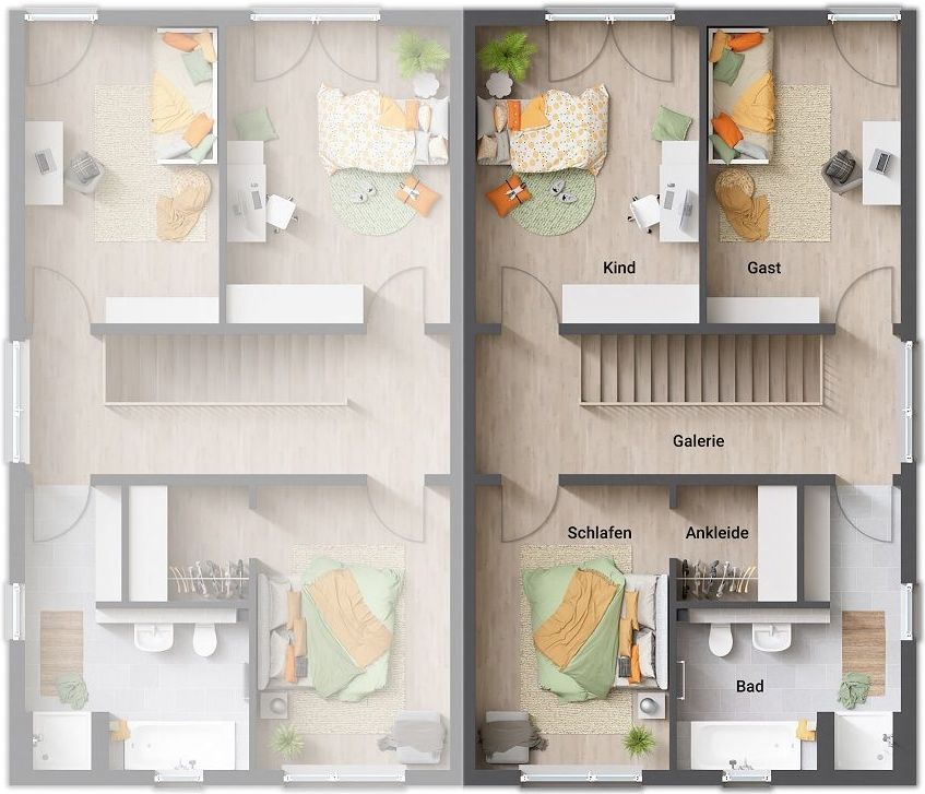 Dieses Haus ist ab 295.800 € zu haben. Der dargestellte Preis bezieht sich auf eine Doppelhaushälfte.