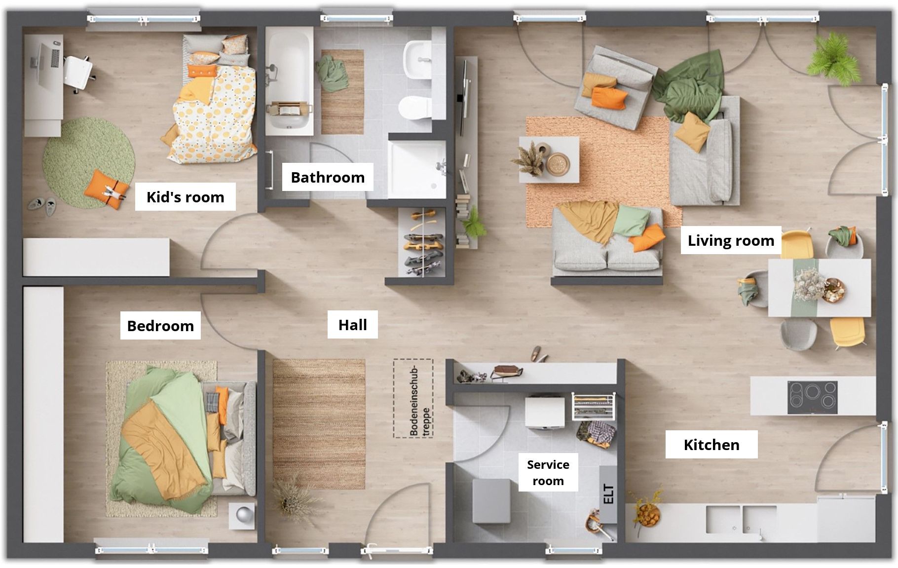 The Bungalow 100 is ideal for anyone looking for a home for life. With approximately 100 square meters of living space, it's not too small for a young family, but also not too large for a couple in their golden years.