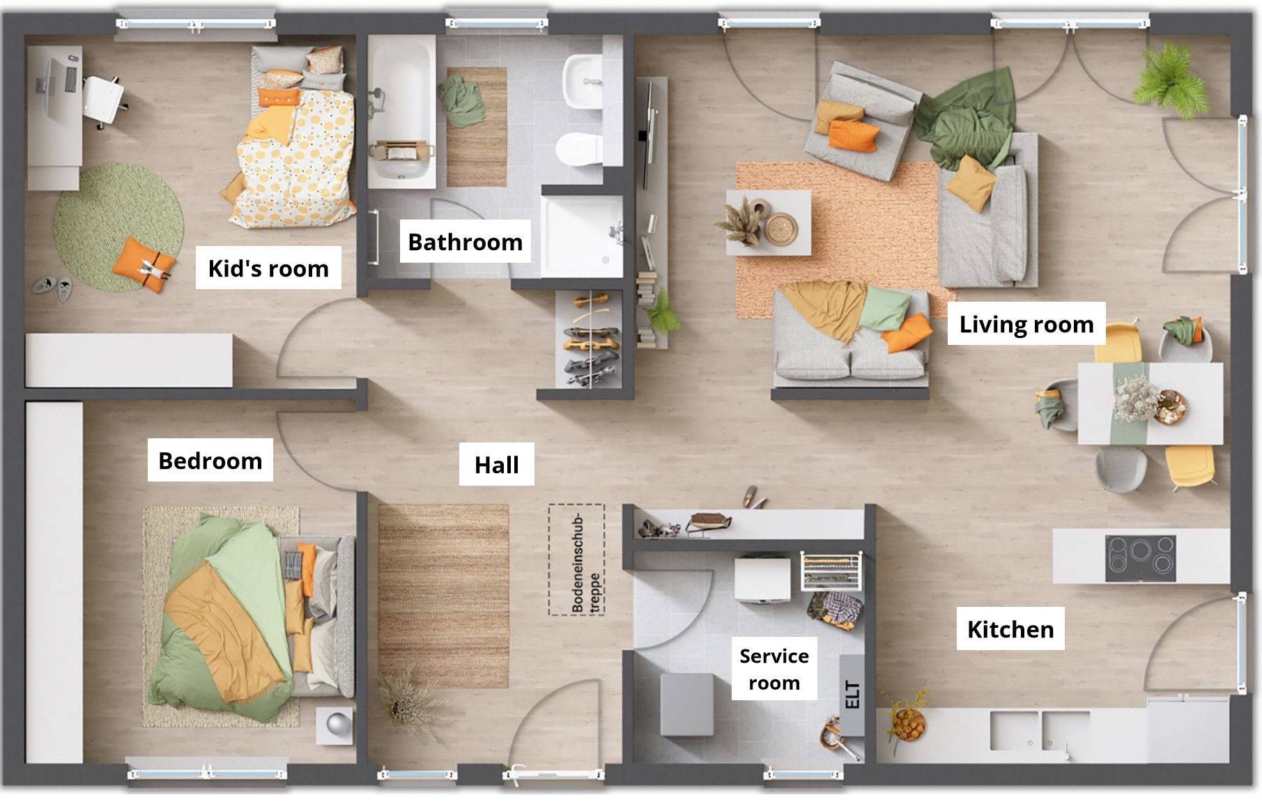 The Bungalow 100 is ideal for anyone looking for a house for their entire life. With around 100 square meters of living space, it is not too small for a young family, but also not too big for a married couple in their golden years.