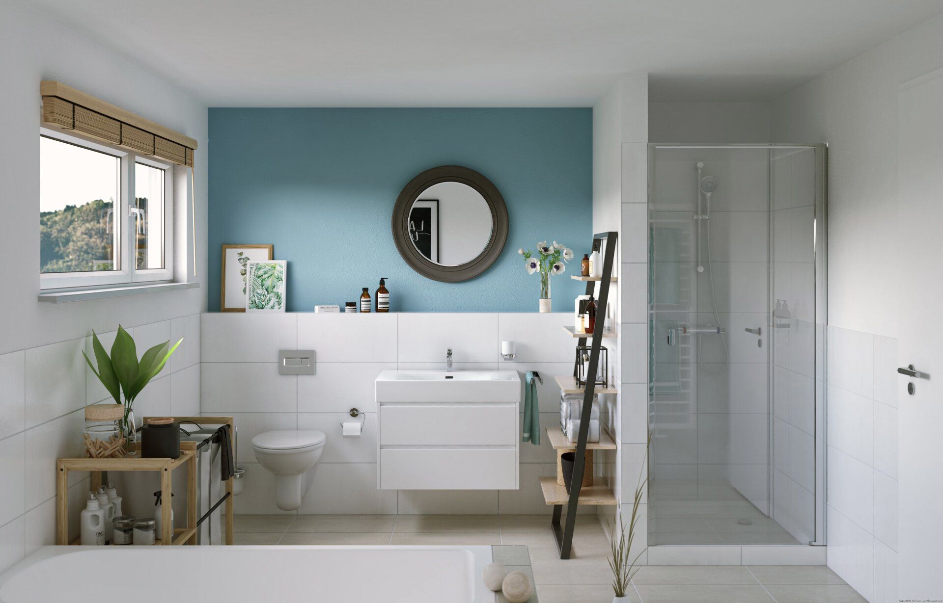 On the upper floor, the gables with flat roof dormers provide more comfort. This turns the full-floor bathroom into a real oasis of well-being and there are no sloping ceilings in the cozy children's room. Floor-to-ceiling windows allow plenty of light and brightness into the guest and master bedrooms.