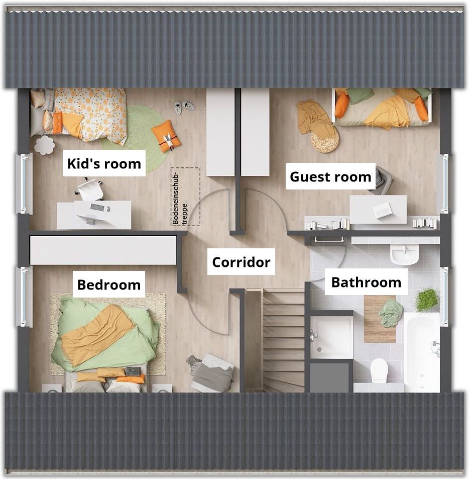 The name “Flair 110” stands for 110 square meters of living experience: The floor-to-ceiling windows that flood the living area with lots of light are an eye-catcher. Bright, cozy and spacious – enough space to develop throughout the house.