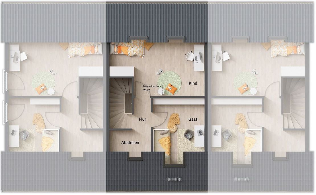 Ein Reihenhaus ist eine optimale Lösung für alle, die sich genügend Raum zum Wohnen wünschen, aber zugleich in einer Region bauen in der Grundstücke knapp sind. Das Mainz 128 wird in klassischer Weise als Kombination von drei Reihenhäusern gebaut. Drei Familien leben quasi unter einem Dach, Sie können von der guten Nachbarschaft und der Hausgemeinschaft profitieren. Zugleich lässt Ihr Reihenhaus genügend Platz für Ihre Individualität.