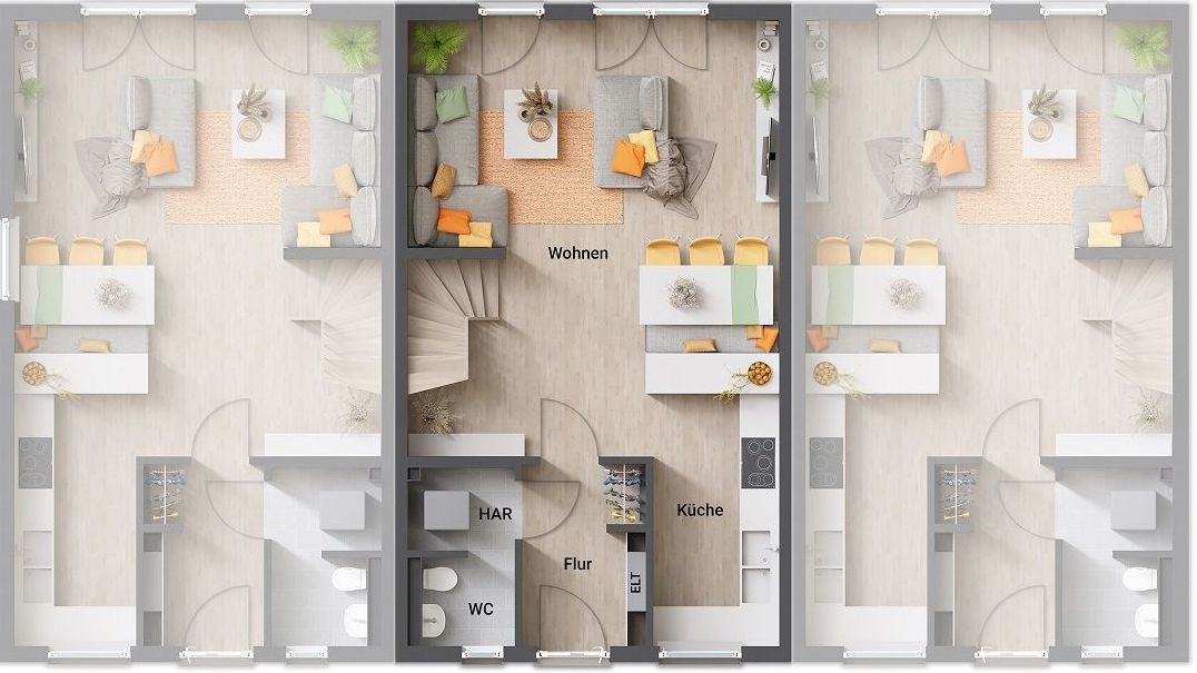 Dieses Haus ist ab 265.600 € zu haben. Der hier dargestellte Preis bezieht sich auf das Reihenmittelhaus.