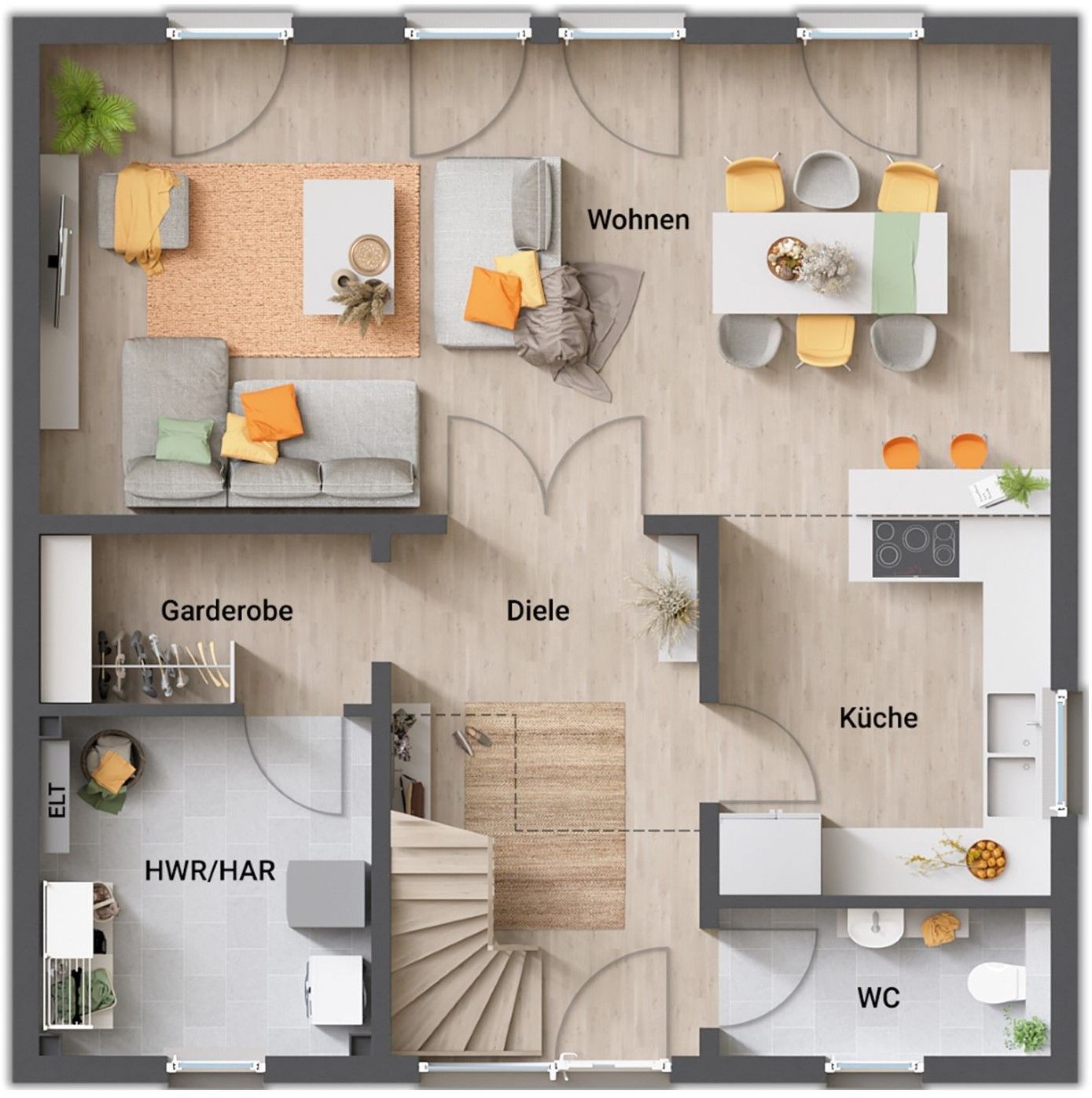 Die Wohnflächenberechnung erfolgte nach der Wohnflächenverordnung. Darin enthalten sind 8,71 m² Nutzfläche. Geringfügige Abweichungen bis zu 3% bezogen auf die Gesamtnutz- und Wohnfläche sind bauseits möglich. Weitere Abweichungen können bei Änderungen der Standardausführungen entstehen. Abbildung kann Sonderwünsche enthalten.