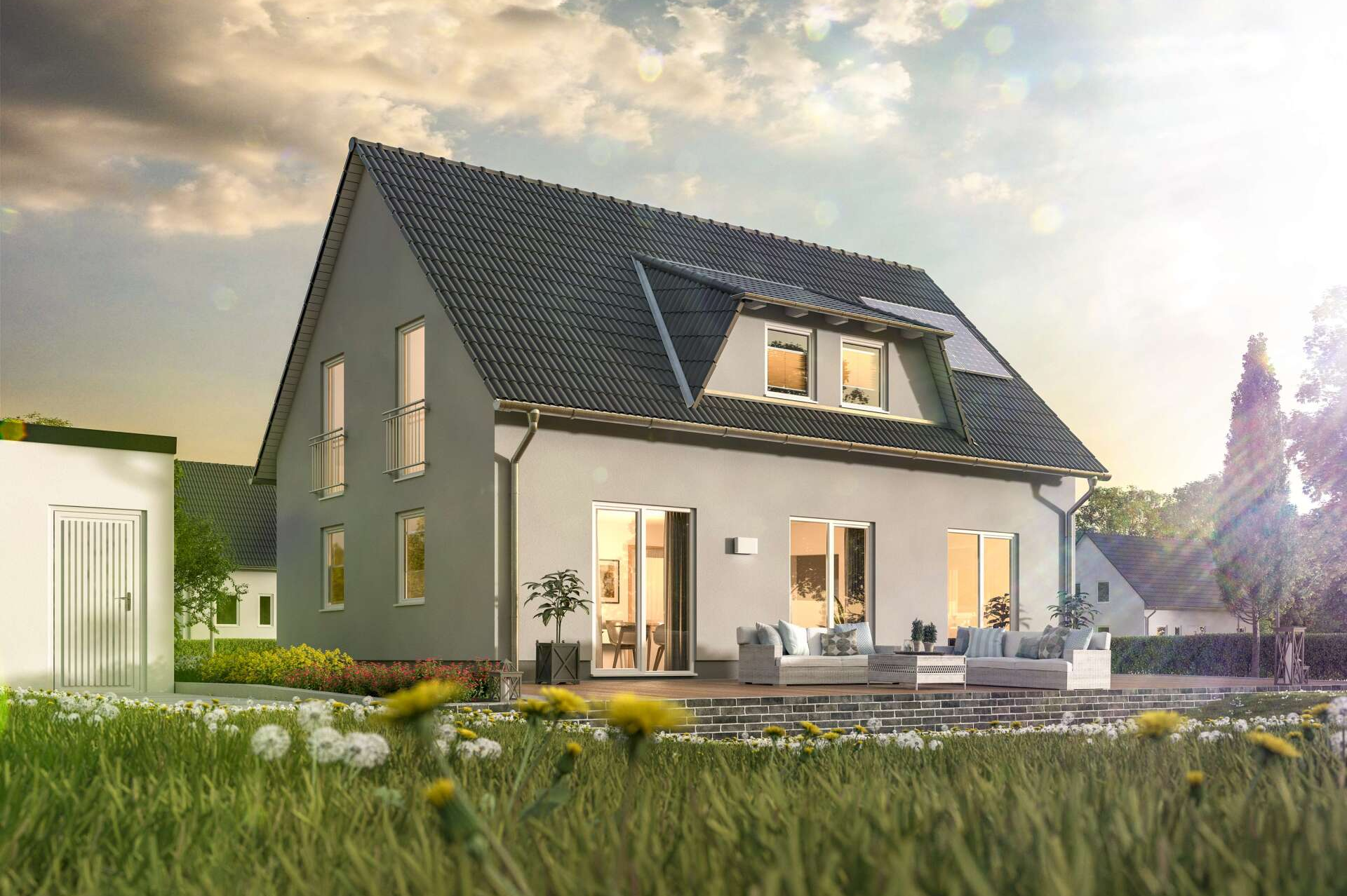 In unserer Online-Hausausstellung finden sie nicht nur preiswerte Häuser für Einsteiger, wie das Raumwunder oder unseren beliebten Einfamilienhaus-Klassiker Flair 113, sondern auch eine große Auswahl an größeren Massivhäusern sowie Doppel- bzw. Reihenhäuser. Unsere Bungalows erfüllen stufenlose Wohnträume und bieten die Möglichkeit ein altersgerechtes Haus zu bauen. Das gewisse Etwas bieten zum Beispiel unsere Stadthäuser oder das Aura 125 für schmale Grundstücke. Jedes Haus ist auch als KfW-Haus verfügbar. Ob Passivhaus oder Nullenergiehaus - wer besonders großen Wert auf Nachhaltigkeit und Energieeffizienz legt, sollte sich unsere Energiesparhäuser ansehen.